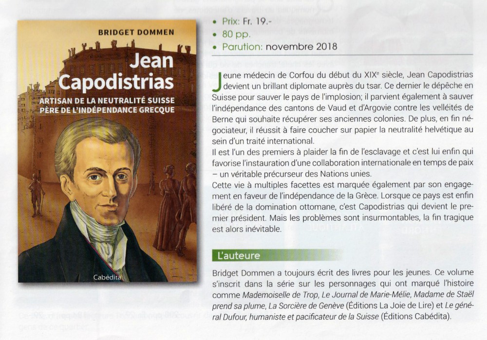 Sans Capodistrias, la Suisse existerait-elle encore? Après la défaite de Napoléon, il sauve les turbulents cantons de démembrement par des puissances voisines. Il fait reconnaître la neutralité suisse. Une brillante carrière qui connaît une fin tragique.