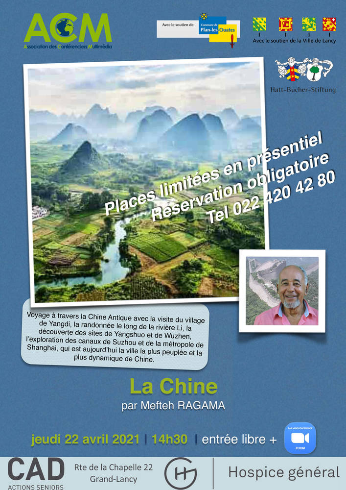 Voyage à travers la Chine Antique avec la visite du village de Yangdi, la randonnée le long de la rivière Li, la découverte des sites de Yangshuo et de Wuzhen, l’exploration des canaux de Suzhou et de la métropole de Shanghai, qui est aujourd’hui la ville la plus peuplée et la plus dynamique de Chine. La conférence sera donnée d'une part en présentiel (places limitées | inscription obligatoire au Tel 022 420 42 80) et d'autre part par ZOOM.